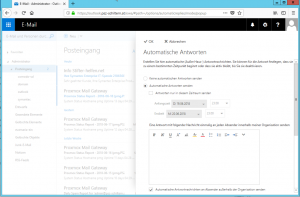 Wenn Automatische Antwort senden ausgewählt ist, dann wird der Eingegebne Text im angegeben Zeitraum gesendet.