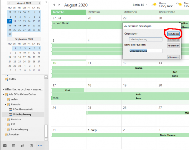 Dort auf den Pfeil vorne klicken, dann auf Alle Öffentlichen Ordner, dann auf Kalender