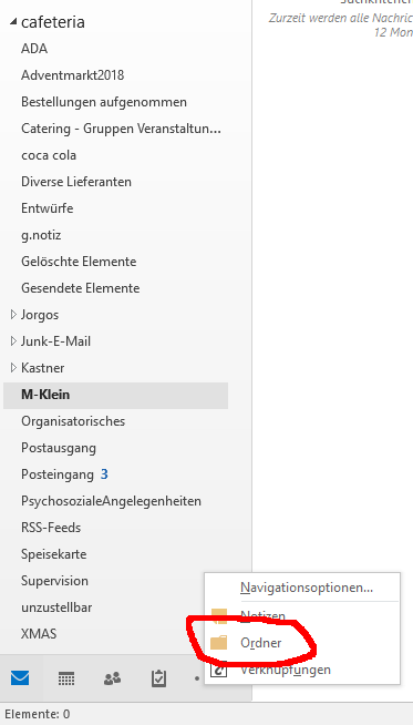 Die Anzeige des Menüs ändert sich jetzt. Jedes Konto zeigt jetzt alle darin enthaltenen Ordner an.
