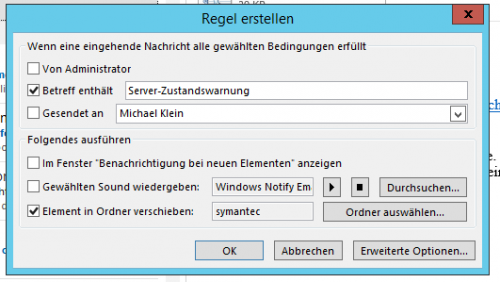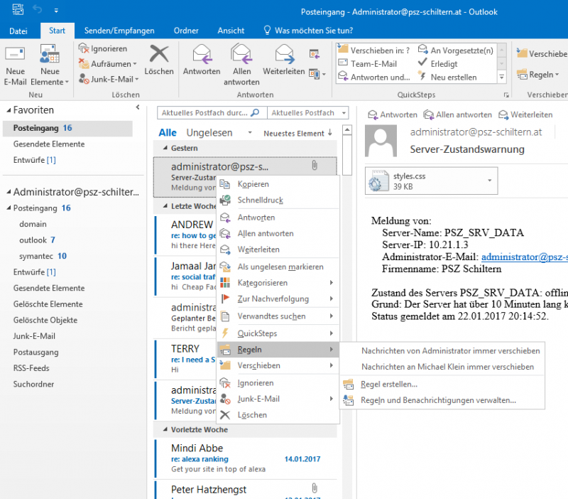Aus eingegangenen Mails kann man durch einen Linksklick auf die gewünschte Mail, für die eine Regel erstellt werden soll, eine regel erstellt werden.