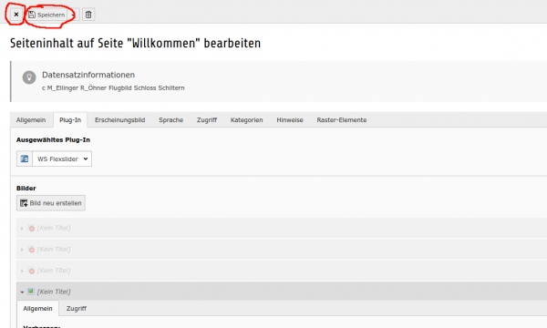 Wenn alles fertig ist klicke zum Abschluß wieder auf Speichern und danach auf das X neben dem Speichern.